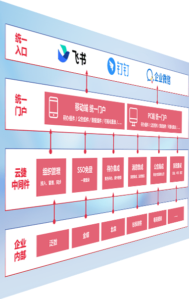 对协作平台提供支持服务,,,,支持企业应用与协作平台对接,,,包含组织同步、、、消息集成、、待办集成等。。。。支持目前主流的协作平台:钉钉、、、、企微和飞书。。。。